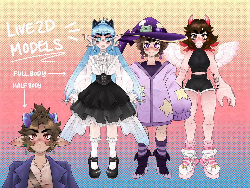 thanks for wanting to work with me! below are my rates for standard illustrations and Live2D models, as well as my terms of service at the bottom <3 all prices are estimates, final price will be calculated situationally, just reach out to me :)all prices are in USD